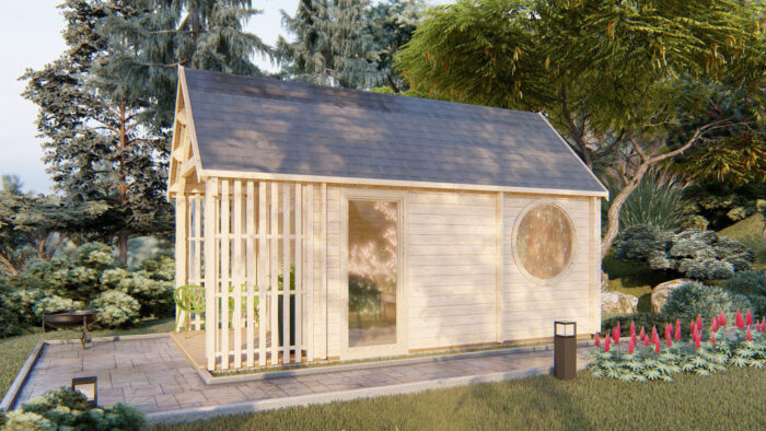 Díky tomuto uspořádání nabízí model Albert logicky rozdělený prostor pro relaxaci i saunování v prostředí vlastní zahrady.