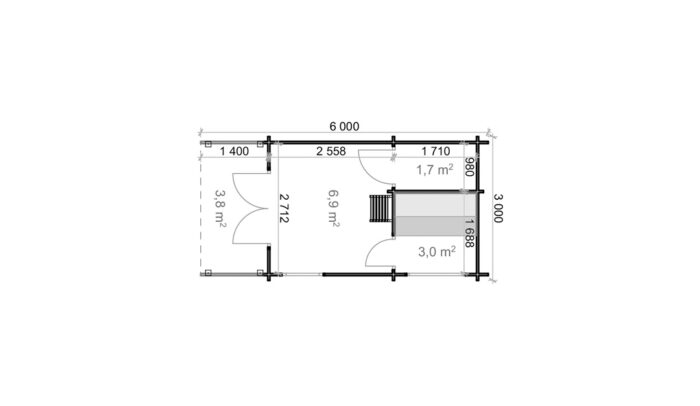 Albert je zahradní wellness domek s přehledně řešenou dispozicí, která odděluje jednotlivé části pro pohodlné saunování i následný odpočinek. Interiér tvoří hlavní odpočinková místnost o ploše 6,9 m², na kterou navazuje saunová část o velikosti 3,0 m².