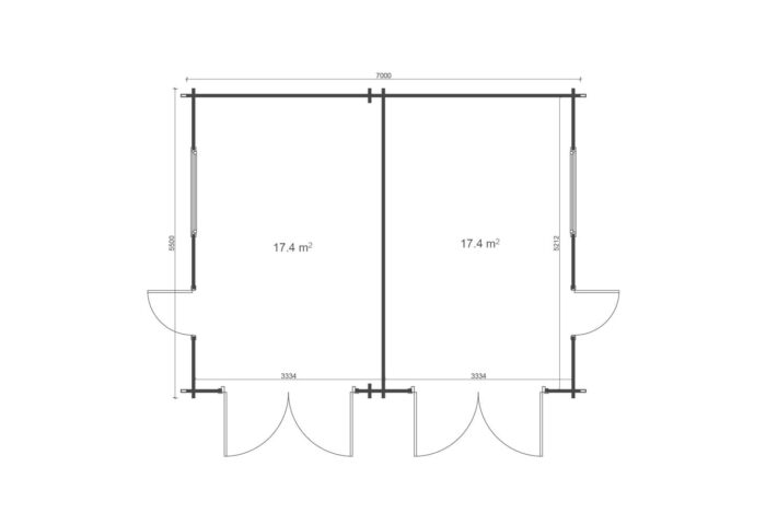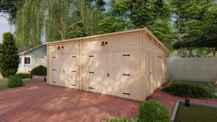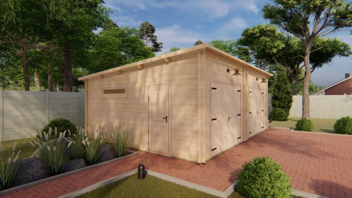Se dvěma samostatnými bočními vchody je zajištěna vynikající přístupnost do obou částí garáže bez nutnosti manipulace s hlavními vraty. Model je standardně dodáván bez vrat, která vám však rádi dodáme a odborně namontujeme jako volitelné příslušenství.