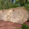 Robustní stěny z 44mm roubeného hranolu a plocha střechy 42 m² zajišťují maximální stabilitu a ochranu vašeho majetku. Interiér je osazen dvěma moderními úzkými okny s izolačním dvojsklem, která dodávají stavbě současný vzhled a zajišťují přirozené osvětlení.