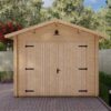 Tato garáž z kvalitního vysokohorského dřeva je dodávána v základním provedení bez vrat, která lze však za příplatek objednat včetně odborné montáže.