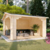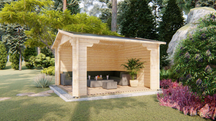 S čtvercovým půdorysem 3,8 x 3,8 m a vnitřní plochou 13,4 m² nabízí ideální prostor pro rodinné stolování či zahradní kuchyni. Střecha s plochou téměř 21 m² a kvalitním 19mm záklopem zajišťuje bezpečné zastřešení, zatímco poctivá podlaha o tloušťce 28 mm dodává celému objektu prémiový charakter.
