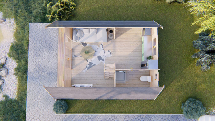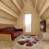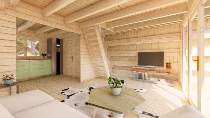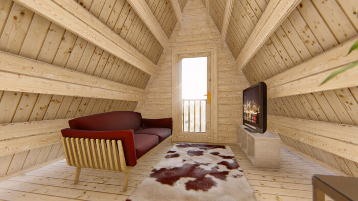 Robustní konstrukce z vysokohorského dřeva s plochou střechy přesahující 96 m² zajišťuje stavbě Hrabina vynikající odolnost a dlouhou životnost i v náročnějších horských podmínkách.