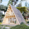 Dominantou stavby je vysoký štít s výškou hřebene 5,67 m, který interiéru dodává vzdušnost a umožňuje plnohodnotné využití podkroví. Chata je vybavena jak balkonem (3,4 m²), tak přízemní terasou (5,7 m²), přičemž oba tyto prostory jsou chráněny velkorysým přesahem střechy o délce 1,3 m.