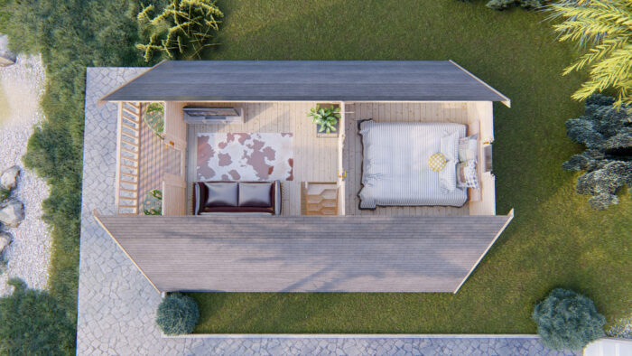 Model Hrabina představuje ideální řešení pro ty, kteří hledají prostorné a útulné zázemí s klasickou siluetou patrové dřevostavby. Na základní ploše 52 m² ukrývá promyšlenou dispozici pěti místností, což z ní činí perfektní rodinné sídlo pro rekreaci i delší pobyty.