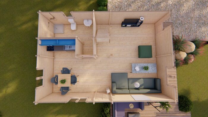 Díky použití masivního 68mm roubeného hranolu a možnosti volby zesílené podlahy (28 mm) je tato stavba z vysokohorského smrku ideálním kandidátem na komfortní celoroční užívání v jakémkoliv terénu.