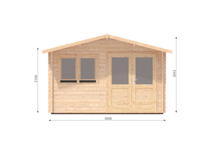 Konstrukce z masivního 44mm roubeného hranolu zajišťuje vynikající stabilitu a pevnou obálku budovy, která je vhodná i pro instalaci náročnějšího vybavení. Dvě velká okna a nadstandardně široké dvoukřídlé dveře s izolačním dvojsklem zaručují optimální prosvětlení celého prostoru.