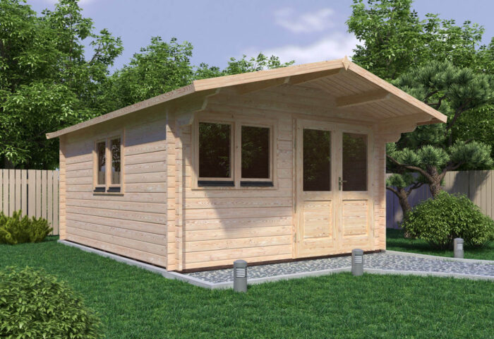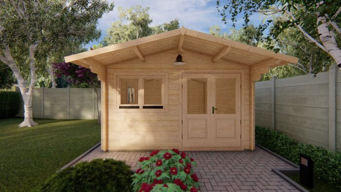 Konstrukce využívá masivní 44mm roubený hranol, který stavbě propůjčuje mimořádnou stabilitu a pevnost. Dvě rozměrná okna spolu s extra širokými dvoukřídlými dveřmi (160 cm) osazenými izolačním dvojsklem zajišťují dokonalé prosvětlení.