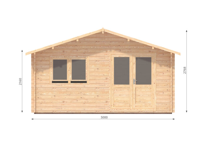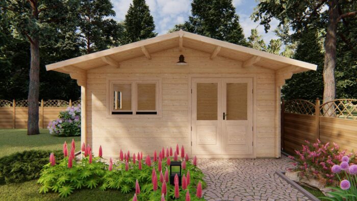 Masivní konstrukce z 44mm roubeného hranolu zajišťuje vynikající pevnost a stabilitu, kterou doplňuje střešní záklop z poctivých 19mm palubek. Interiér těží z přirozeného světla díky dvěma rozměrným oknům a extra širokým dvoukřídlým dveřím s izolačním dvojsklem.