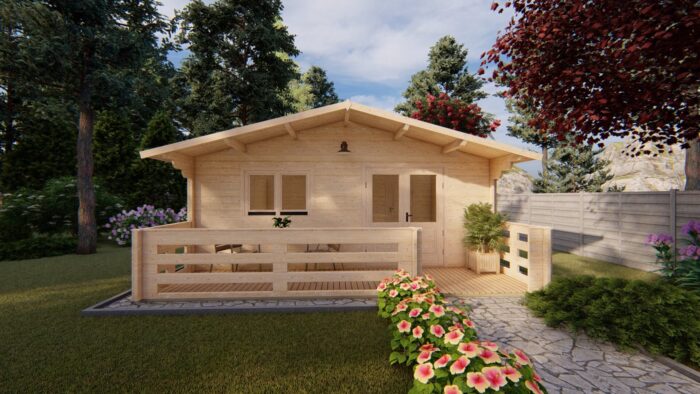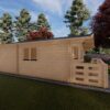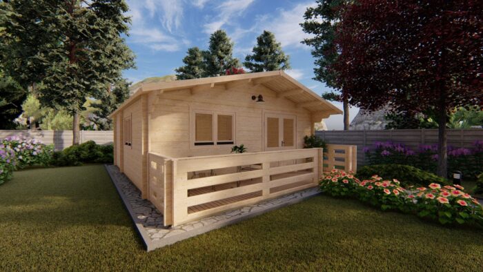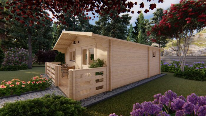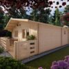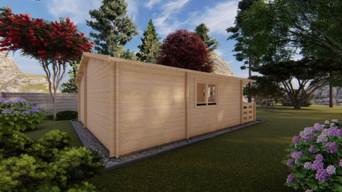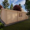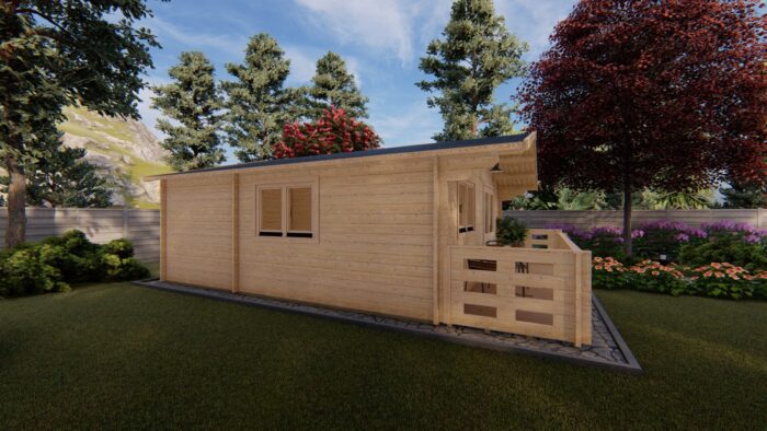 Masivní 44mm roubený hranol a plocha střechy přesahující 45 m² dělají z tohoto domku robustní a stabilní stavbu vhodnou pro široké spektrum aktivit – od rozměrného ateliéru až po soukromé fitness nebo společenskou místnost.