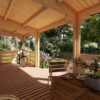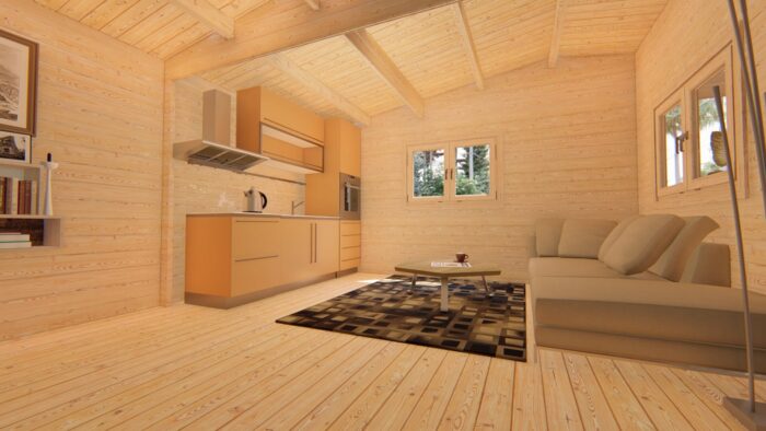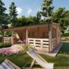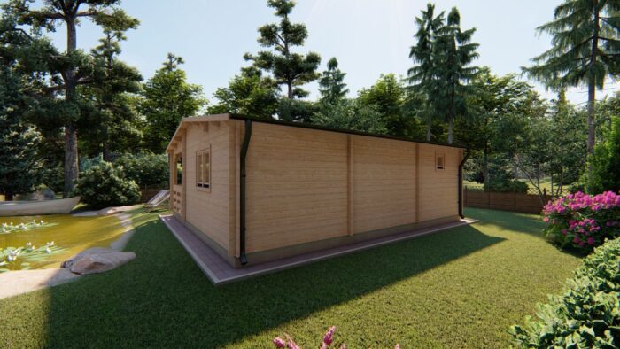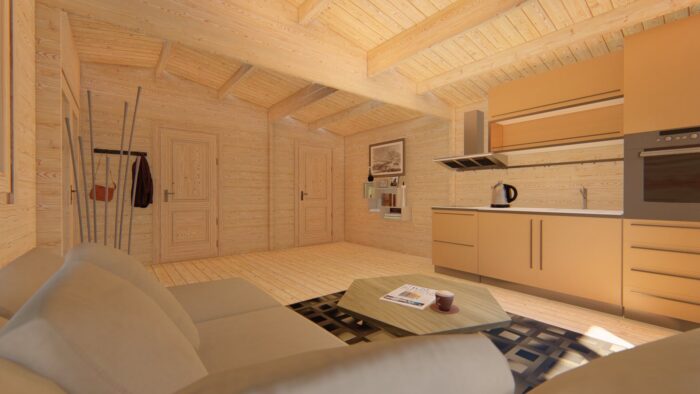 Robustní konstrukce z 44mm masivního roubeného hranolu a plocha střechy přesahující 60 m² podtrhují stabilitu a odolnost této stavby, která je vyrobena z kvalitního vysokohorského dřeva pro dlouhodobé a náročné užívání.