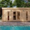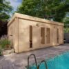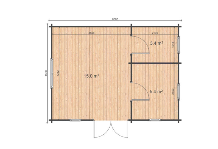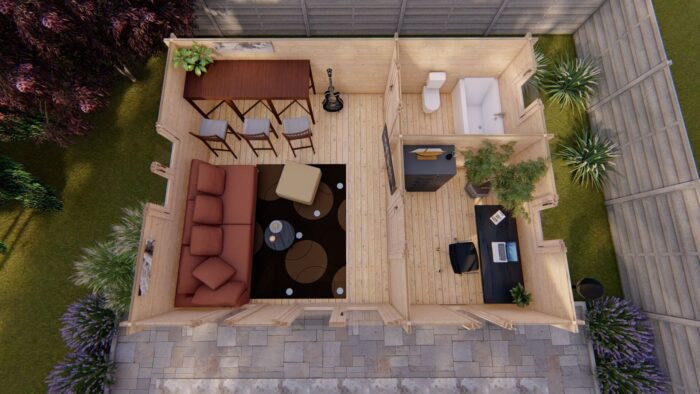 Model Ota představuje vysoce funkční chatku, která na ploše 27 m² nabízí propracovanou dispozici tří samostatných místností. Tento model je výjimečný svým přístupem – díky třem samostatným dveřím (včetně širokého dvoukřídlého vstupu) a pěti oknům s izolačním dvojsklem nabízí každá část chaty dostatek soukromí i světla.