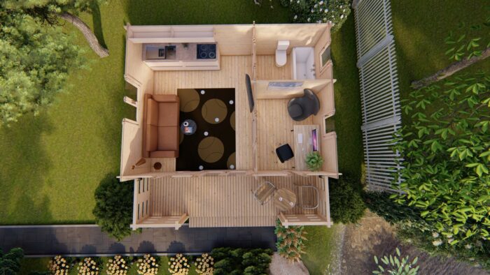 Chatka Pavel A je navržena pro ty, kteří chtějí spojit komfortní vnitřní bydlení s aktivním využitím venkovního prostoru. Dominantou tohoto modelu je integrovaná terasa o ploše 8,3 m², která rozšiřuje užitnou plochu a nabízí kryté místo pro posezení za každého počasí.