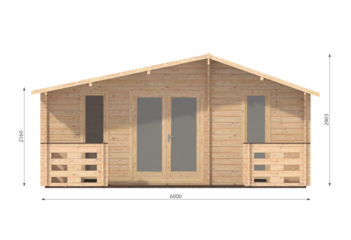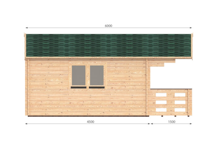 | Tloušťka stěny | 44 mm – Dřevěný roubený hranol |