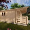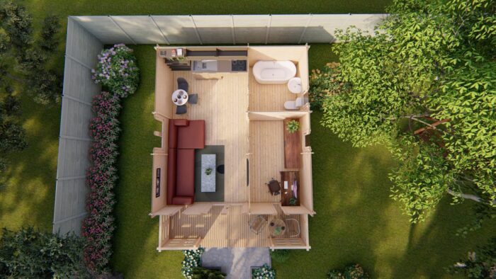 Masivní 44mm roubený hranol z vysokohorského dřeva a střešní záklop o tloušťce 19 mm podtrhují robustnost a dlouhou životnost této stavby, která se snadno stane centrálním bodem vaší relaxační zahrady či pozemku.