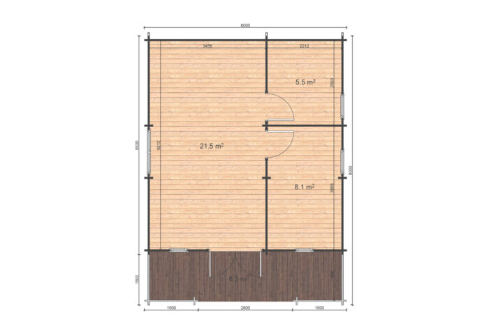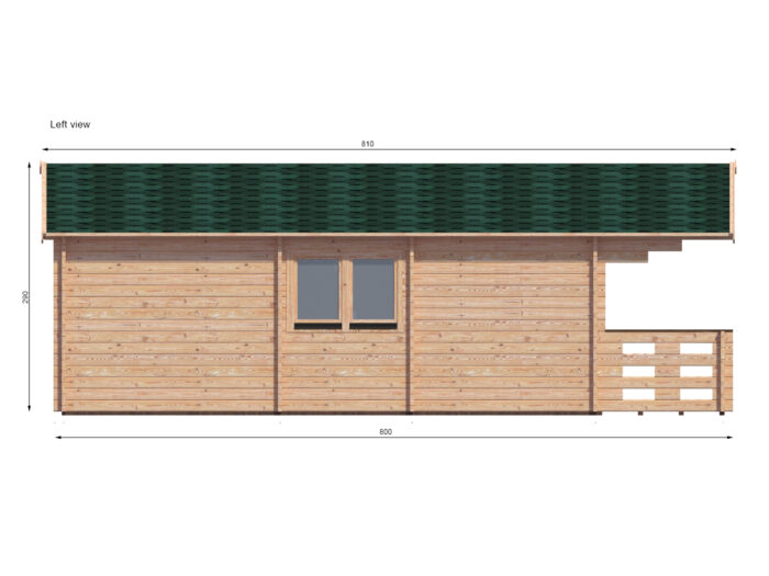 | Tloušťka stěny | 44 mm – Dřevěný roubený hranol |