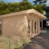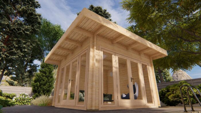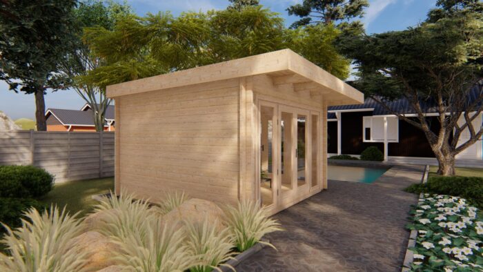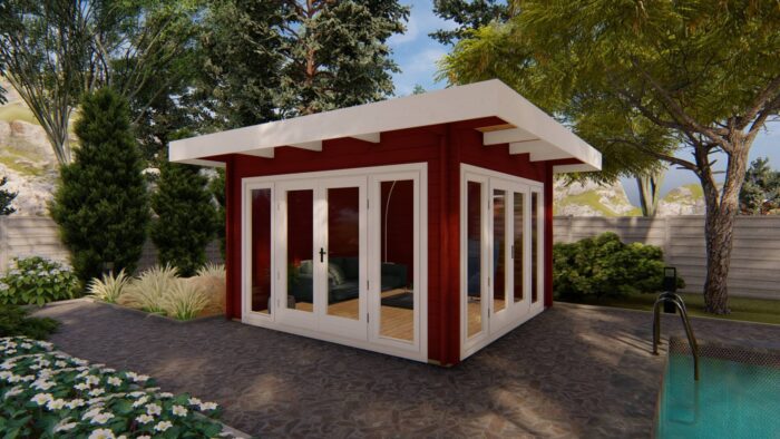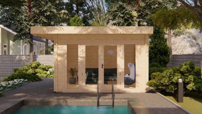 Tento model prakticky stírá hranici mezi vnitřním prostorem a zahradou, což ho předurčuje k využití jako moderní zahradní altán, prosvětlený letní obývací pokoj nebo stylové zázemí u bazénu. Robustní 44mm roubený hranol a téměř shodná výška stěn a hřebene zajišťují stavbě minimalistický, kubický vzhled, který skvěle doplňuje moderní architekturu.