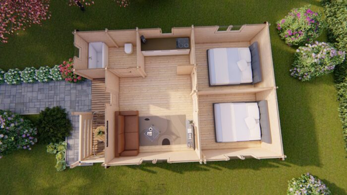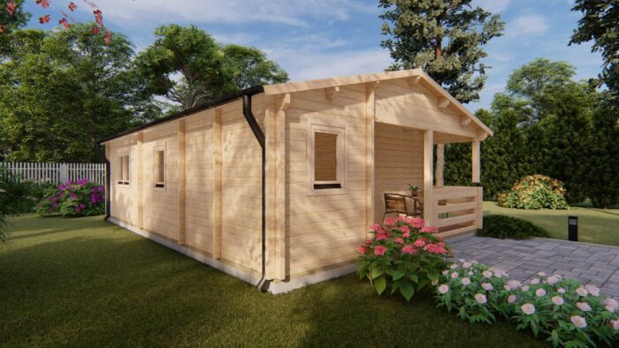 Na zastavěné ploše 52,8 m² vzniklo mimořádně efektivní uspořádání, které doplňuje terasa o rozloze 5,3 m² pro kryté venkovní posezení. Variabilita tohoto modelu je podtržena možností volby tloušťky stěny (44 mm nebo 68 mm) i podlahových prken, což z chaty Rasová činí objekt vhodný i pro velmi náročné klimatické podmínky.