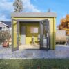 Izolační dvojsklo a poctivé vysokohorské dřevo dělají z tohoto modelu ideální volbu pro stylový zahradní sklad, malou domácí dílnu nebo útulnou pracovnu obklopenou zelení.