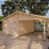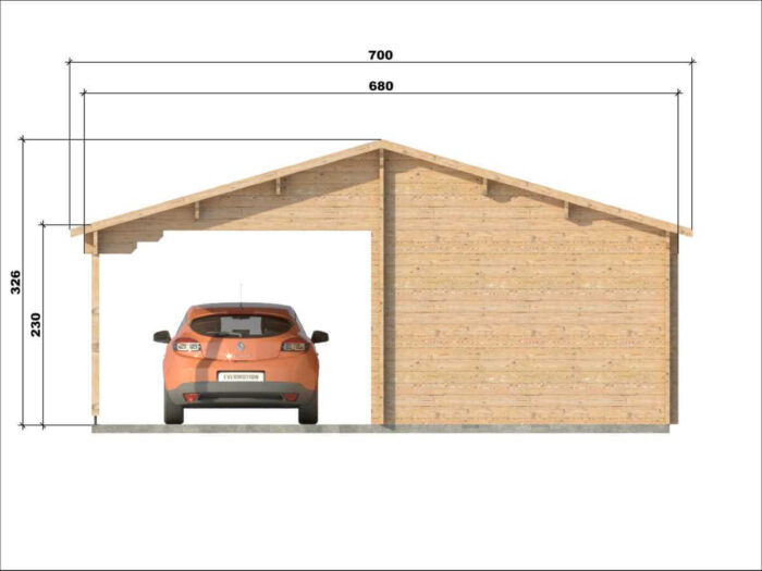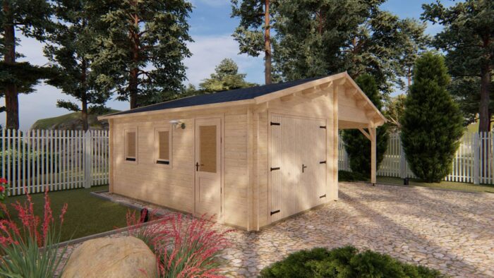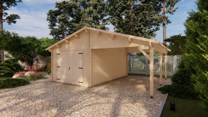 Toto riešenie je ideálne pre rodiny s dvoma vozidlami, alebo pre tých, ktorí hľadajú kombináciu bezpečného garážovania a krytého vonkajšieho priestoru pre dielňu či skladovanie dreva. Robustná konštrukcia zo 44 mm rúbeného hranola a strecha s plochou 44,5 m² zaisťujú vysokú odolnosť proti poveternostným vplyvom.