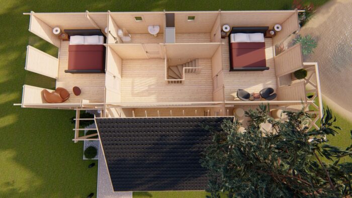 Model Morava je majestátna poschodová drevostavba, ktorá svojou zastavanou plochou cez 121 m² a úctyhodnou výškou hrebeňa 6,2 metra predstavuje absolútny vrchol našej ponuky. Táto chata je koncipovaná ako plnohodnotné viacgeneračné sídlo, ponúkajúce nevídanú dispozíciu desiatich samostatných miestností.