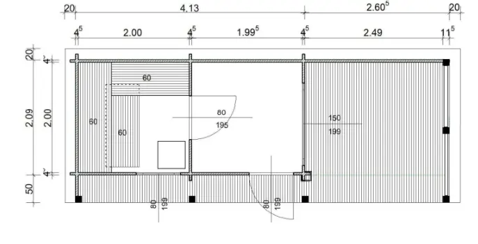 | Hrúbka steny | 44 mm – Drevený zrubový hranol |