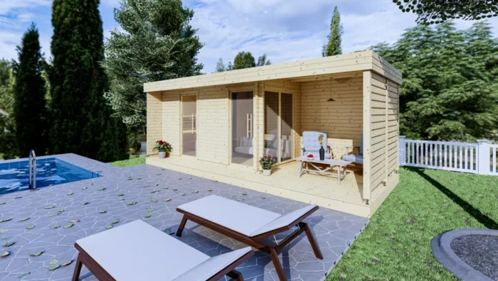 Oproti menším modelom disponuje vnútornou plochou 8,63 m² rozdelenou do dvoch miestností, čo umožňuje vytvoriť samostatnú saunovú časť a komfortnú vnútornú odpočiváreň či šatňu.