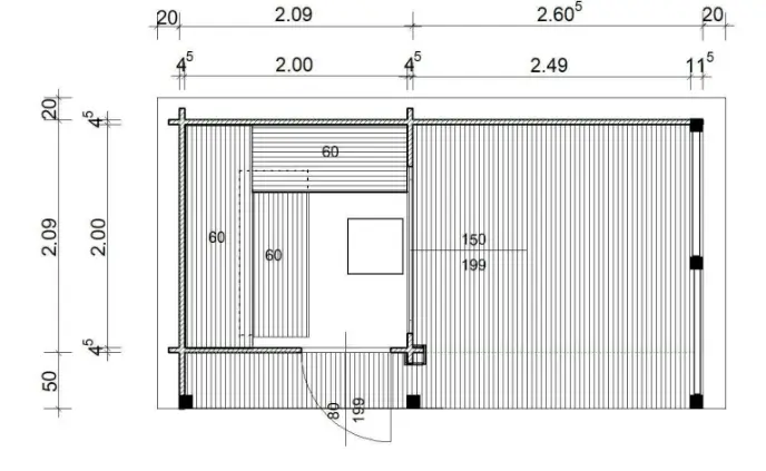 | Šírka a dĺžka chaty | 5,09×2,79 m |